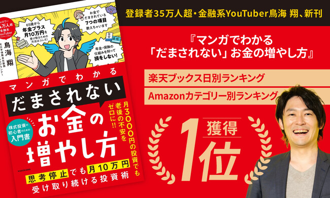 金融教育サービスを手掛ける株式会社Challenger(本社:愛知県名古屋市)の代表取締役・鳥海翔が新刊『マンガでわかる「だまされない」お金の増やし方 思考停止でも月10万円受け取り続ける投資術』が、11月12日(水)発売後、楽天ブックス日別ランキング、Amazonのカテゴリー別ランキング、共に1位を獲得したことをお知らせいたします。