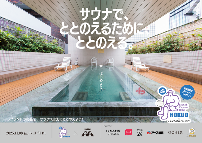 温浴施設特化型メディア「マッパ!」を運営する日本一株式会社(本社:東京都港区東麻布、代表取締役CEO:高橋大成)は、2025年11月8日(土)~11月21日(金)の約2週間、東京都台東区上野の「サウナ&カプセルホテル北欧」にて、サウナや「ととのえる」という概念と高い親和性を持つ企業・ブランドと連携した体験型展示イベントを開催します。
