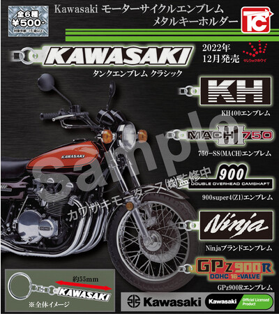 株式会社ジュロクホウイ(本社:東京都千代田区、代表取締役:赤松 武雄)は、カワサキモータース株式会社監修のもと、Kawasaki往年の名車達のエンブレムを重厚なメタル素材で精巧に再現したキーホルダ―を、12月より順次、一般小売店カプセルトイ売場(通称:ガチャガチャ)にて発売予定。