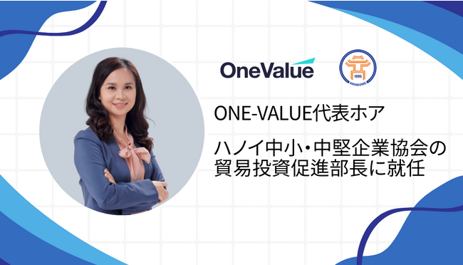 ベトナムに特化した経営コンサルティング企業であるONE-VALUE株式会社(東京都江東区)の代表取締役フィ ホアが、2023年6月7日(水)付けで、ハノイ市人民委員会が管轄する「ハノイ市中小・中堅企業協会(ベトナム語:HIỆP HỘI DOANH NGHIỆP NHỎ VÀ VỪA TP HÀ NỘI)」の貿易投資促進部長に就任しました。2023年は日越外交関係樹立50周年という節目の年でもあり、当社はベトナムの各都市・地方の行政機関とも連携しながら、日越間ビジネスのさらなる発展に取り組んでまいります。