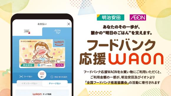 一般社団法人全国フードバンク推進協議会(代表理事:米山廣明)は、明治安田生命保険相互会社(執行役社長:永島英器)、イオン株式会社(代表執行役社長:吉田昭夫)、およびイオンフィナンシャルサービス株式会社(代表取締役社長:深山友晴)との協働で発行された「フードバンク応援WAON」による支援が開始されたことをお知らせいたします。