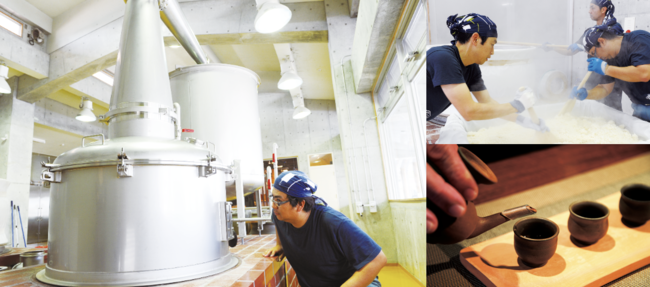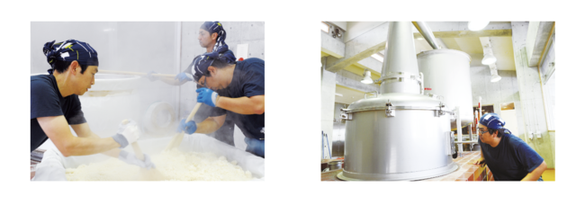 琉球王国時代の地釜甑(じがまこしき)による米蒸し、忠孝窯製の甕仕込み、沖縄本島では唯一の地釜蒸溜。