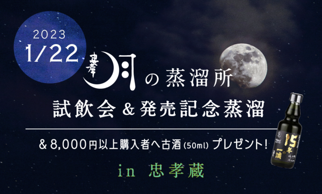 発売記念として、旧正月(&2023年初の新月)である1/22(日)に「くぅーすの杜 忠孝蔵」にて「月の蒸溜所」の特別試飲会&記念蒸溜を行います。