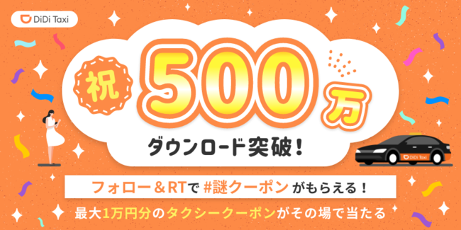 Mapion > ニュース > リリース > タクシーアプリ「DiDi」累計500万ダウンロード突破記念! Twitterフォロー&RTキャンペーンを実施