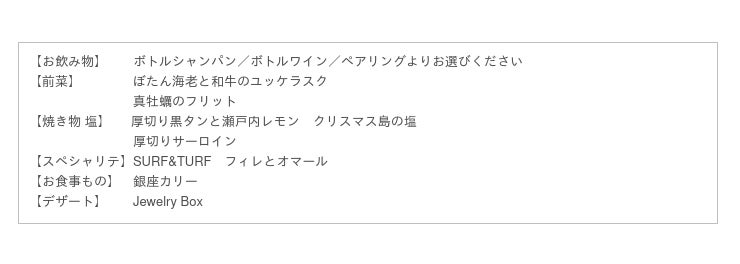 クリスマス・スペシャルプラン(フルアテンド+ドリンク付)について