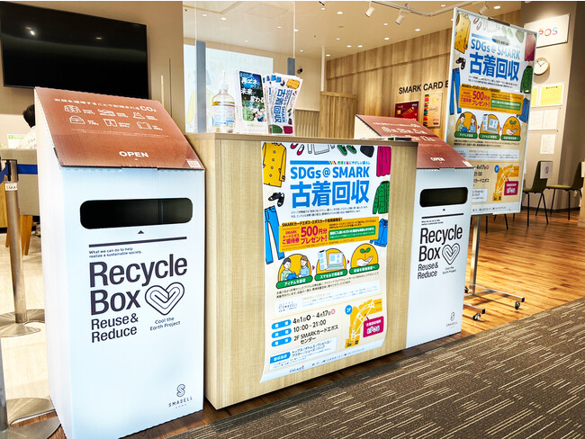 CO2削減量が記されたオリジナル回収ボックスの支給は無償で行い、回収された衣類はSMASELL(スマセル)が買取。それらの衣類の一部を新たなユーザーに届けるため再販を行うなど、「廃棄のない循環型社会」目指す為の役割を担っています。