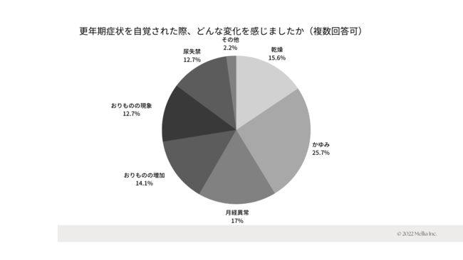 ライフステージの変化に伴い、デリケートゾーンにもトラブルを感じたと回答した人の15.6%は「乾燥」を、25.7%は「かゆみ」をあげており、ホルモンバランスの変化とデリケートゾーンの乾燥が関係していると考えられることが分かりました。