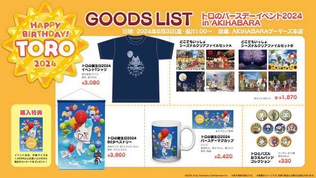 こちらの新作グッズは2024年5月3日(金・祝)にAKIHABARAゲーマーズ本店にて開催される「トロのバースデーイベント2024 in AKIHABARA」にて先行販売を行います。