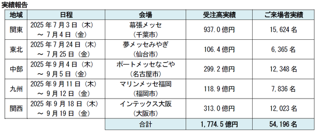 ユアサ商事株式会社(東京都千代田区、代表取締役社長:田村 博之)は、販売先様の会である「やまずみ会」様、仕入先様の会である「炭協会」様とともに、2025年7月から9月までの期間に、関東、東北、中部、九州、関西の5か所において展示会「 つなぐグランドフェア2025」を実施いたしました。ご来場いただきました54,196名の皆さま、並びにご支援・ご協力をいただきました関係各位の皆さまに心より御礼申し上げます。