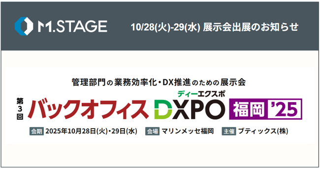 Mapion > ニュース > リリース > エムステージ、10/28(火)・29(水)「第3回バックオフィスDXPO 福岡'25」にブース出展!