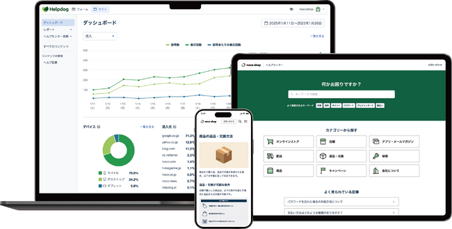 noco株式会社(本社:東京都中央区、代表取締役:堀辺 憲)は、セルフサポートシステム「ヘルプドッグ」において、新機能「サポートウィジェット」の提供を開始しました。FAQサイト、AIチャットボット、問い合わせフォームをひとつにまとめ、ユーザーが今見ているページ上で疑問を解決できる仕組みを実現します。