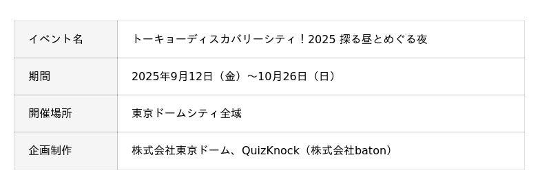 本イベントは、2025年9月12日(金)から10月26日(日)まで東京ドームシティ全域で開催されたイベントでクイズ王・伊沢拓司氏が率いるQuizKnockがプロデュースする大規模イベントになります。