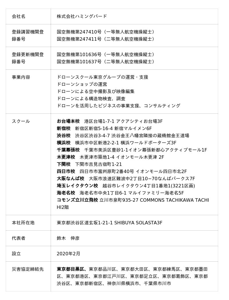 株式会社ハミングバード(ドローンスクール東京)について