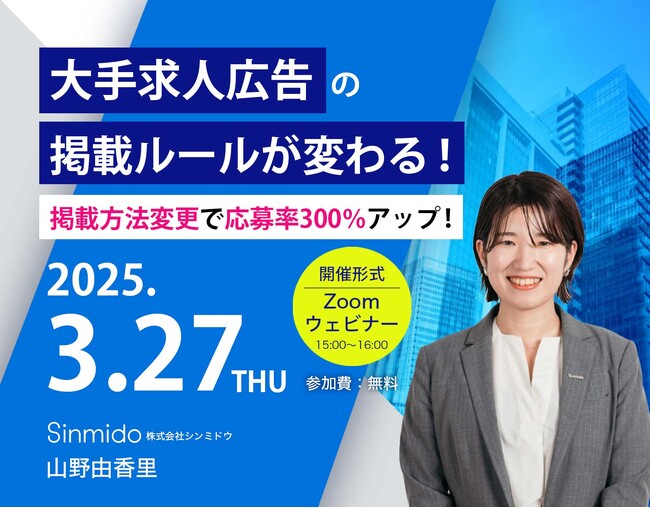 株式会社シンミドウ(本社:埼玉県さいたま市)は、大手求人広告の最新ルールの変更点を解説するとともに、今後企業が取るべき具体的な対策について無料ウェビナーを開催します。
