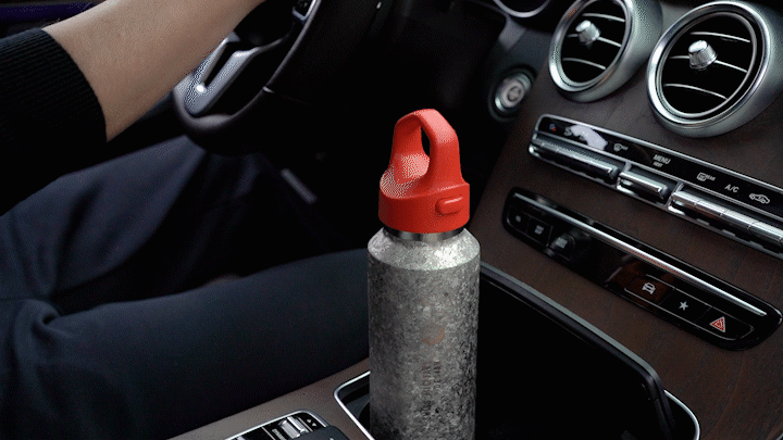 ユニックなデザインで運転中でも片手でラクラク補水できます。
