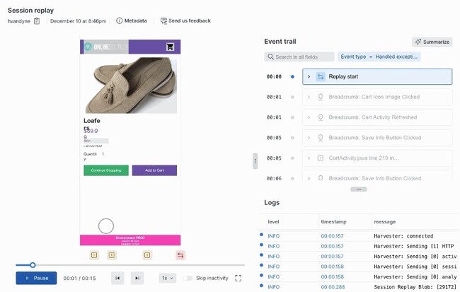デジタルビジネスにオブザーバビリティ(可観測性)プラットフォームを提供するNew Relic株式会社(本社:東京都中央区、以下「New Relic」)は、新機能「New Relic Mobile Session Replay」を発表しました。Mobile Session Replayでは、スマートフォン上でユーザーが実際に行った画面操作を、動画を再生するようにプレイバックすることができ、これによって問題を再現し、解決を迅速化するための重要なコンテキストをエンジニアに提供します。本機能によりエンジニアは、ユーザーがアプリケーションをどのように使用しているかをより深く理解し、ユーザーのデジタル体験を最適化できます。