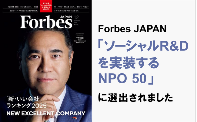 むすびえがForbes JAPAN「ソーシャルR&Dを実装するNPO50」に選出されました