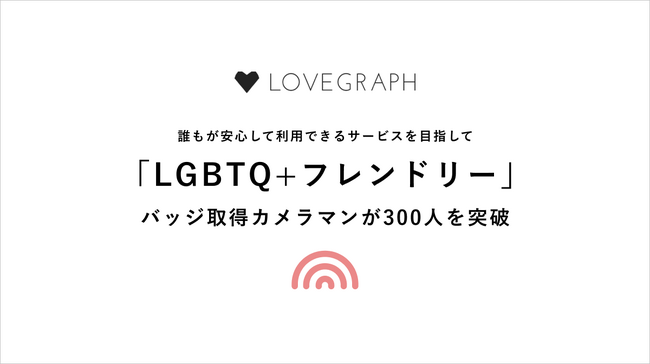 出張撮影サービス「Lovegraph(ラブグラフ)」を運営する株式会社ラブグラフ(本社:東京都渋谷区、代表取締役:駒下 純兵、本間達也、以下「ラブグラフ」)は、LGBTQ+やそのご家族への理解と敬意を持っていることの証であるLGBTQ+フレンドリーバッジの取得カメラマンが300人を超えたことをお知らせいたします。