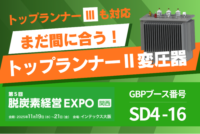再生可能エネルギー、EV自動車部品、AI及びIoT領域における先進技術を駆使し、グローバルに急速に成長している、~再エネ業界の風雲児~ GBP株式会社(本社:東京、以下GBP)は、2025年11月19日(水)から21日(金)の3日間、 インテックス大阪で開催される第5回 脱炭素経営 EXPO【関西】に出展いたします。本展示会では、「トップランナー第二次判断基準・第三次判断基準」対応変圧器、移動式太陽光発電所、リパワリングをはじめ、確かな実績を備えたGBPの製品及びサービスをご紹介します。