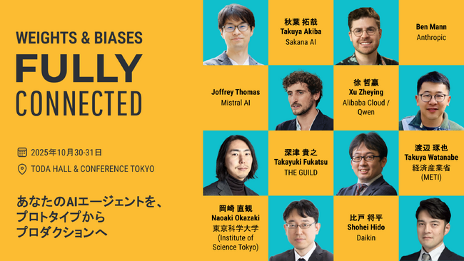 カラクリ株式会社(本社:東京都中央区、代表取締役:小田志門、以下カラクリ)は、2025年10月30日(木)・31日(金)にWeights & Biases Japan株式会社が主催する年次ユーザーカンファレンス「Fully Connected 2025 Tokyo」において、Day 1(10月30日)にハンズオンワークショップに登壇します。