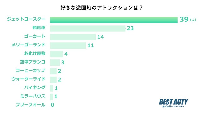 アンケートの結果、「ジェットコースター」と答える人が最も多い結果となりました。
