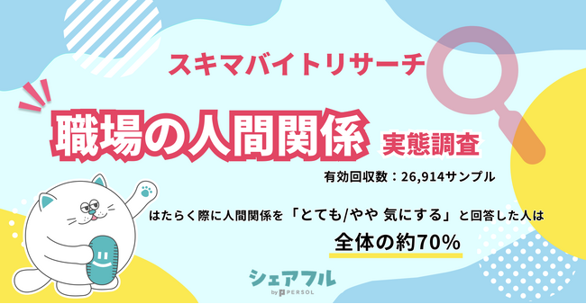 「はたらいて、笑おう。」をビジョンに掲げるパーソルグループのスキマバイトアプリ『シェアフル』やSaaSシフト管理サービス『シェアフルシフト』、就業実績を活用した人材紹介サービス『シェアフルエージェント』などを提供するシェアフル株式会社(本社:東京都港区、代表取締役社長:横井 聡)は、『シェアフル』ユーザーを対象に、職場の人間関係に関する実態調査を実施しました。