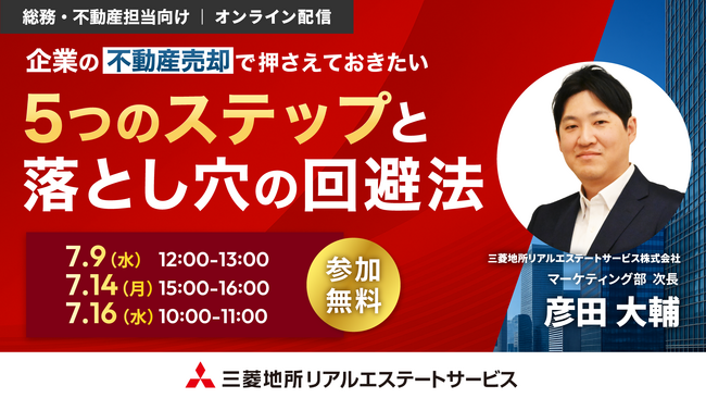 不動産総合コンサルティング会社の三菱地所リアルエステートサービス株式会社(本社:東京都千代田区)は総務・不動産担当向けのオンラインセミナーを開催いたします。