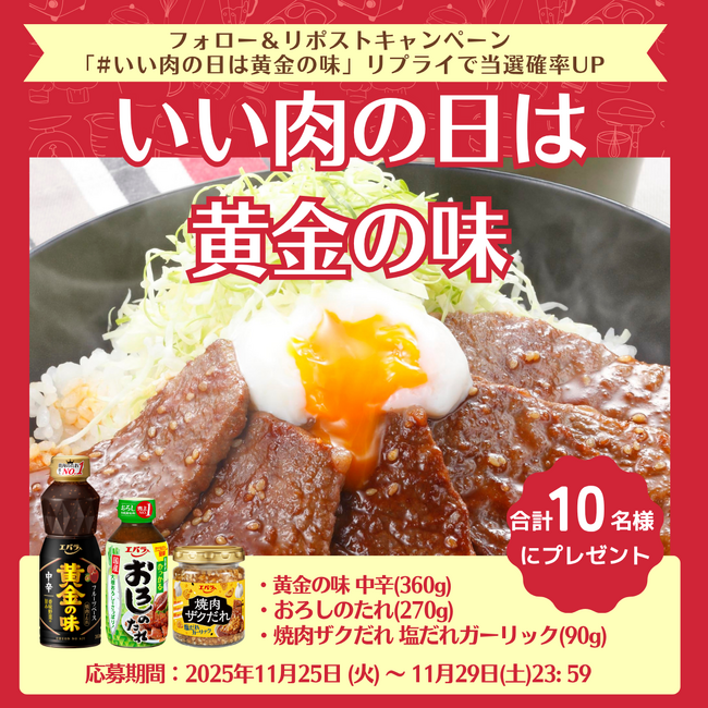 エバラ食品工業株式会社(本社:神奈川県横浜市、代表取締役社長:森村 剛士)は、料理研究家のリュウジさんとのコラボレーションやエバラ食品公式Xアカウントでキャンペーンを実施するなど、さまざまなプロモーションを展開し、11月29日(土)「いい肉の日」を盛り上げます。