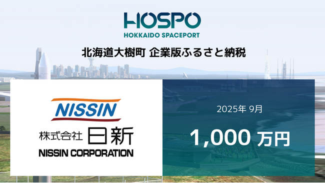 北海道大樹町(町長:黒川豊)はこのたび、株式会社日新(本社:東京都千代田区、代表取締役社長:筒井雅洋)より1,000万円の企業版ふるさと納税をいただきました。