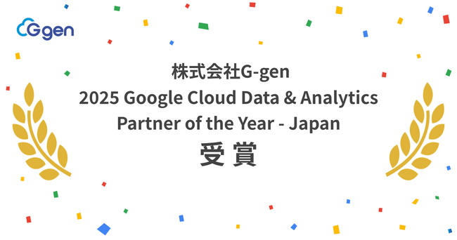 株式会社G-gen(本社:東京都新宿区、代表取締役:羽柴孝、以下G-gen)は、2025年4月8日に2025 Google Cloud Data & Analytics Partner of the Year - Japan を受賞したことを発表いたします。