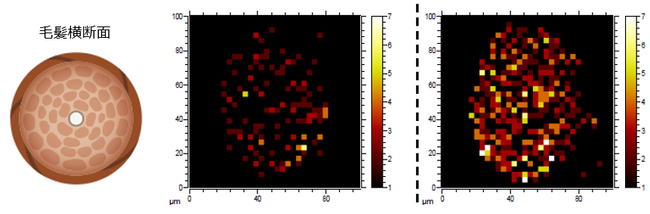 研究の背景と目的 毛髪の主要成分であるケラチンはシスチンを多く含んでいることが特徴で、このシスチンという成分は毛髪を硬くし、弾力性を持たせる役割を果たしています。そのため、毛髪内のシスチンが失われた場合、毛髪ダメージの一因となる事が知られています。当社では、これまでの研究で、アミノ酸単体としてのシスチンに高い毛髪補修効果を見出し、学会報告や特許出願を行ってきました※2。しかしながら、シスチンは化学的な反応を受けやすい特性があることから、ヘアカラー製剤への配合が難しく、その効果についてもわかっていませんでした。
