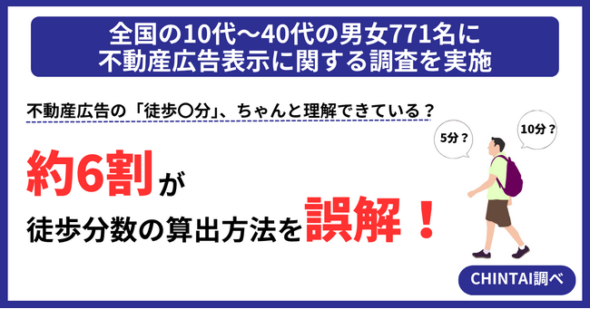 お部屋探しのリーディングカンパニー 株式会社CHINTAI(本社 東京都港区、代表取締役社長 奥田倫也、以下 CHINTAI)は、全国の10代~40代の男女771名を対象に、「不動産の広告表示に関するアンケート」を実施しました。本調査では、お部屋探しの際によく目にする「徒歩〇分」や「アクセス良好」といった不動産広告の文言に対するユーザーの認識や違和感、さらに広告の印象と実際の感覚にギャップがあることが明らかになりました。
