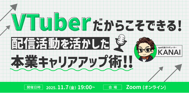 VTuber、IPコンテンツを通して日本と世界で新たな流通を生み出す“IPコンテンツの総合商社”株式会社uyet(ユエット)(本社:東京都渋谷区、代表取締役:梶田大樹)は、ウェビナー「VTuberだからこそできる!配信活動を活かした本業キャリアアップ術!」を11月7日(金)19:00から開催します。本ウェビナーを実施することで、より配信を楽しめる環境作りを行っていただくために兼業VTuber・Vライバーの方が配信と本業を両立するためのナレッジを提供することで、VTuber・Vライバー業界の発展に繋げていきたいと思っております。
