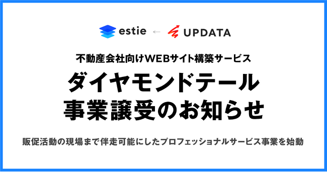 estie、UPDATAより不動産会社向けWEBサイト構築サービス「ダイヤモンドテール」事業を譲受