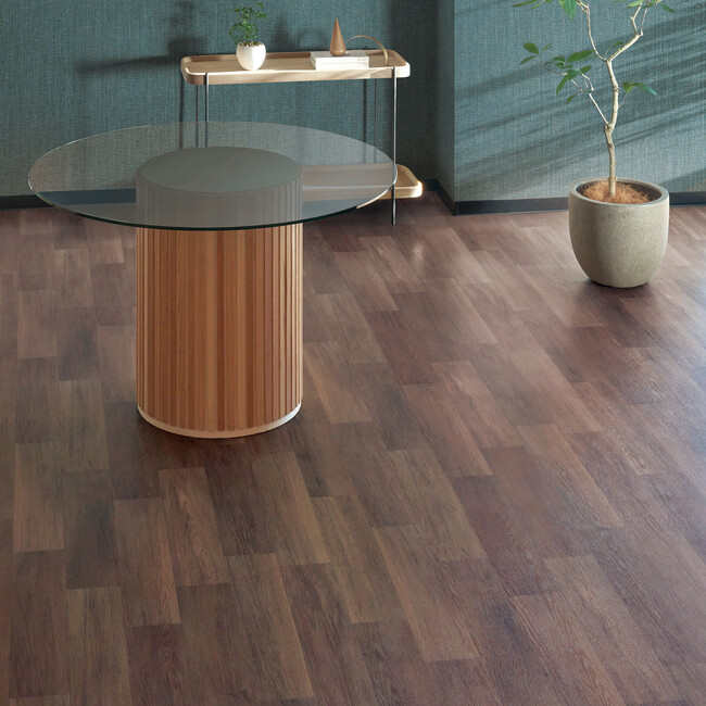壁紙のデザインとコラボレーションした床材 ストロング Naturescape:床 PM-24008、壁 STH-2427