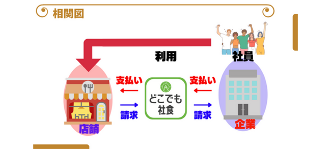 どこでも社食は、自社に社員食堂の設備を持たない企業でも、近くの飲食店と提携する事により「社食」環境を実現できるサービスです。