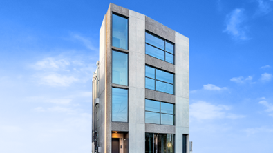 本物件は、ガラス面が広く取られたコンクリート打ち放しの重厚感のある外壁や、標準的なフロアでは天井高3.3mが確保されるなど、開放感とデザイン性を兼ね備えた施設です。物販店舗や美容室などの入居により2024年3月29日現在で満室稼働中の物件です。