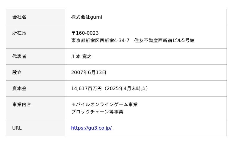 本件は、Sui Foundationとの技術的・事業的な連携を強化するものであり、gumiが開発を進める新作コンテンツ『ブレイブ フロンティア バーサス』における決済手段としての利用拡大も見込まれています。