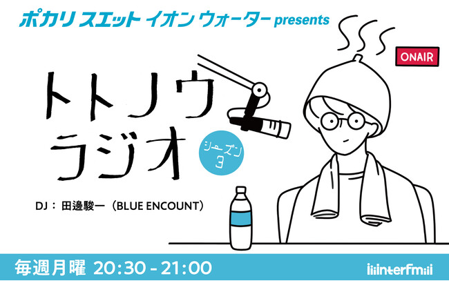 2023年1月2日(月)より放送をスタートする、BLUE ENCOUNT田邊駿一がDJを務める人気サウナ番組「イオンウォーター presents トトノウラジオ」(月曜20:30-21:00 / interfm(TOKYO:89.7MHz))。