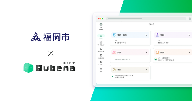 福岡市では、教育振興基本計画の基本方針の中心として「子どもを主体とした学びの推進」を掲げ、個別最適な学びと協働的な学びの一体的な充実のための授業改善やICT環境のさらなる充実、教育データの活用などの取り組みが進められています。そうした取り組みの一環として、このたびAI型教材「キュビナ」が2025年12月より全市立中学校71校(中学1年生~3年生)の約39,000人を対象に正式に採用されることになりました。