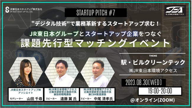 STARTUP PITCHはJR東日本グループからJR東日本グループの抱える課題を提示して、優れたアイデアや先端技術を持つスタートアップとのマッチングを推進するオンラインイベントです。