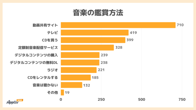 Mapion > ニュース > リリース > 音楽鑑賞方法は「動画サイト」が最多 サブスクサービスは5割が利用中 人気はSpotify(Appliv TOPICS調べ)