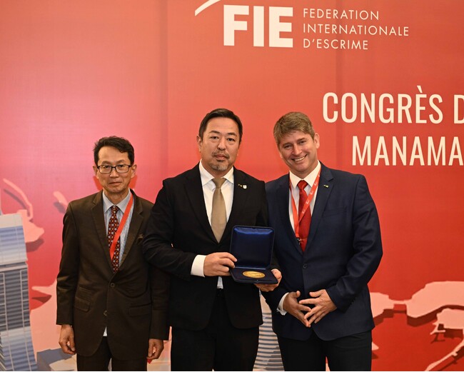 現地時間2025年11月22日(土)にバーレーン(マナーマ)で開催された、国際フェンシング連盟総会にて、女子サーブル 江村美咲(株式会社立飛ホールディングス)が個人年間王者、男子エペがチームで年間王者、となり表彰を受けました。※年間王者:ワールドランキングが最高値となった個人・団体