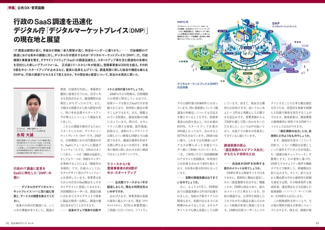 一般社団法人自治体DX推進協議会(所在地:東京都港区、以下「GDX」)は、このたび発行した会報誌『自治体DXガイド Vol.8』において、デジタル庁 戦略・組織グループ デジタルマーケットプレイス(DMP)班の永岡大誠氏へのインタビューを実施し、行政機関のIT調達を変革する「デジタルマーケットプレイス(DMP)」の現在地と展望について伺いました。