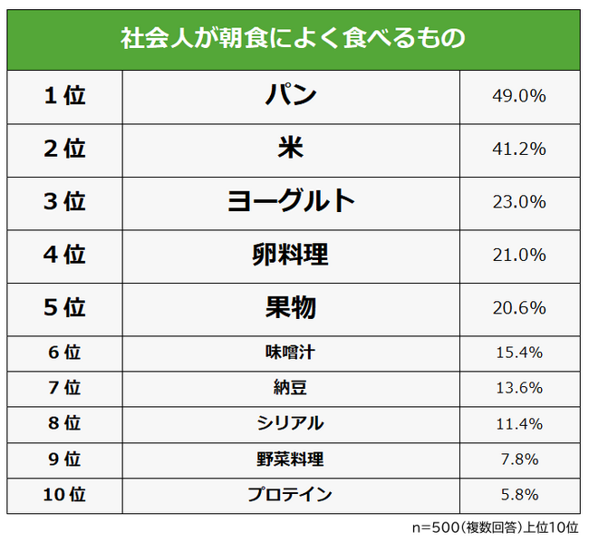 Mapion > ニュース > リリース > 【朝ごはんは何食べる?社会人が朝食に食べるものランキング】男女500人アンケート調査