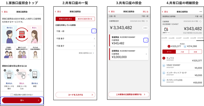 事前に登録したご家族間のみでお互いの口座情報(残高や入出金明細)を確認できます。閲覧