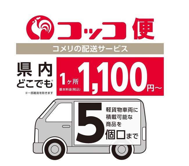 ホームセンターの「コメリパワー」や「コメリハード&グリーン」を通し地域のライフラインとして、地元のプロを応援する株式会社コメリ(所在地:新潟県 新潟市、代表取締役社長:捧 雄一郎)は、配送サービス「コッコ便」の対応エリアに2023年7月11日(火)より宮城県・福島県を追加し、全17都府県にサービスを拡大いたします。