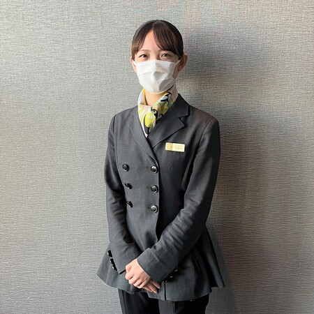 ✴当コラボレーションオリジナルデザインのスカーフをまとったレストランスタッフがお出迎え
