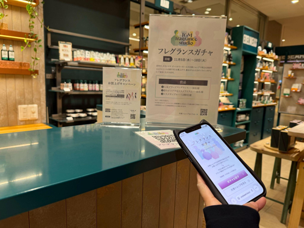 「税込4,000円以上購入 → その場でオンラインガチャ参加」の流れを、デジタル完結で実現。