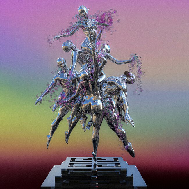 パルファム ジバンシイのために彼らが制作した作品「Engaged Dynamics」は、トランスジェンダーのアイデンティティを持つ 当事者としての経験を映し出しています。この3D彫刻は、彼ら自身の身体を中心に構築されています。「私が自分自身の肌を真に所有することを意味する全てのタトゥーを見ることができます」と説明しています。その人物の鮮やかでダイナミックなポーズは、QUEERな人々が完璧に自分らしくあることができる場所においてこそ得られる陶酔感を表現しています。